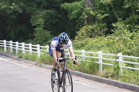 (↑吊った後必死に前を追うワタクシ) 要するに吊り対策をもっと念入りにする必要があるなと。 中盤以降は普通のジェル(アミノバイタルとか)を飲んだだけで吊りそうになった。 今回自分の体の事でわかったのが 水を大量に摂取すれば持ち直すという事=普通に飲んでる分では全然足りてない。 てゆーか用意してきた補給がそもそも全然やった。。 更にオレンジジュースが不要と判明。 通常の練習とかやったら好きでのんでるけどレースのシビアな場面じゃ ちょいととるのが厳しいな。べたつくし。 グリコのBCAA+クエン酸(黄色い箱の黄色い飲み物・まだHPには出てないな) が自分にはよく効いた。大会の商品にもなってたけどこれもう少し安くなれば 結構売れ始めるんやないの?? ついでに言えばかなり重要局面で補給ミスもあったし。 3時間の集団と走ってる時補給のラインに入れず受け渡し出来ず。。 水分がほぼつきて次の周かその次の周で脚が吊った。 でつらつらと書いたけど要約 ・食べ物は固形物の方がいいんじゃね?(バナナとか) ・もっと水分自体を用意する。(今回は結局ボトル5本使った?) ・水分の味をかえてみよう。(CCDはあきた飲む気になれん・色々な味を用意) ・ついでに水分はハイポトニック飲料(浸透圧が低い)をもっと多用する。 ・パワーバーの導入を検討(細切れにしてフレームに貼り付ける?)