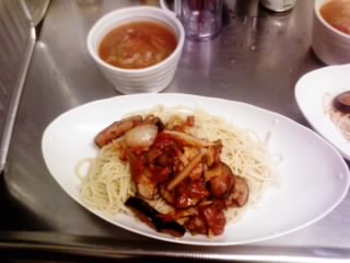 男の料理その2 またもや茄子とトマトのパスタ。 今回は挽肉を使わずベーコンとソースを麺に絡ませることなくかけただけ。 進歩はバジルを入れた事かな?? さらに缶入りトマトをつかいました。やっぱ生の方が好みかも。 パスタだけならここで書く事もなくスープ付でした。 トマトの野菜満載スープ。 だしと月桂樹と肉系のもんで味ついてるから味は気にせず。 上記の余ったトマト缶とキャベツ・たまねぎ・じゃがいも・にんじん・ベーコン入り。 一日置いた方が味が良いがそんな事いっとられんので食しました。 両方とも味の反省点はなし。