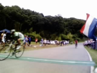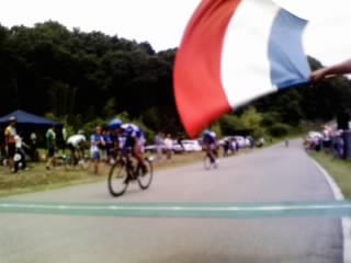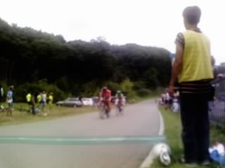 エリートレース展開。 スタートして一周目で実業団チームのマトリックス・パワータグの三船選手、日置選手が飛出す。 その飛出しに一般参加の小嶋選手ともう一人ついて4人での逃げの形。 結局、一人脱落し三船、日置、小嶋の三選手での逃げ。 数周回ったところでかなりの差がつく。 レース的には実業団参加の三船・日置はおいといてもう一方もかなり強い選手なので 逃げの選手が強力すぎてほぼ事故がない限り決まるであろう展開。 まぁ見てる分にはあまりおもしろくない・・・ マトリックスの選手はオープン参加なので順位はつかない為2位争いが注目。 結局残り1周で播州のアームストロングことNさんが飛出し 驚異的なラップタイムをたたいて2位確保。 たらればはなしだけどこのNさんが逃げに入れてたら 1位2位争いがとても面白かっただろうなぁ・・・ スタートの時最後尾についていた(はず)事からやる気の問題??